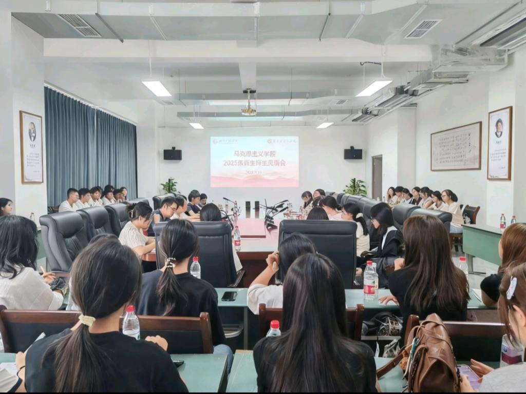 2025年9月11日下午15:00,我院2025级新生师生见面会于东区C108会议室举行。学院院长孙杰、正处级组织员丁竹、党委副书记周春滟、副院长何先成、思想政治教育教研室主任曹红梅等领导及老师出席,2025级全体新生参会,会议由周春滟主持。本次见面会旨在搭建师生沟通桥梁,帮助新生快速适应大学生活、了解学院情况。