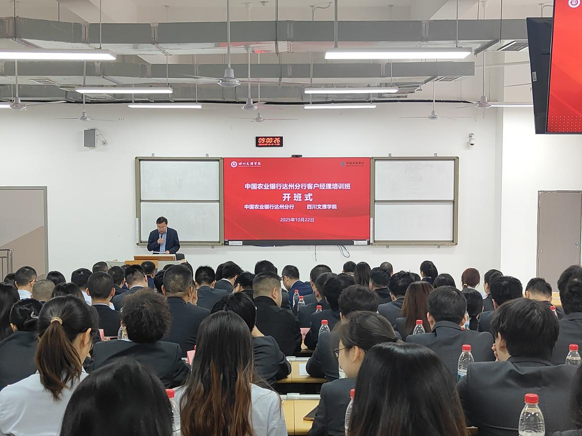 10月22日,“中国农业银行达州分行客户经理培训班”开班仪式在学校举行。此次培训班由中国农业银行达州分行主办,太阳成集团tyc234cc古天乐达州基层治理学院承办。太阳成集团tyc234cc古天乐太阳成集团tyc234cc古天乐院长、达州基层治理学院副院长孙杰致辞。中国农业银行达州分行副行长冯洪波出席开班式。太阳成集团tyc234cc古天乐太阳成集团tyc234cc古天乐副院长何先成主持开班式。