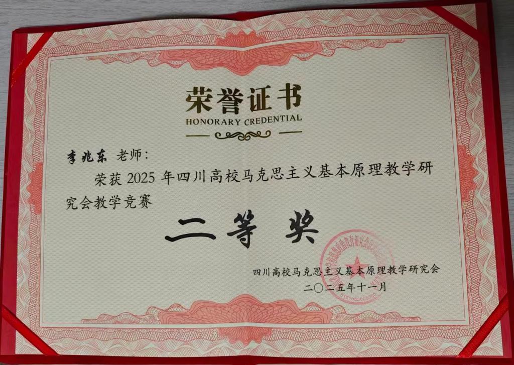当日下午的教学竞赛环节精彩纷呈,来自全省各本科院校的近50名教师同台竞技、切磋教艺。我院青年教师李兆东以“马克思主义生产力理论与新质生产力”为题授课,凭借扎实的理论功底、深刻的逻辑阐释与透彻的说理表达,充分展现了对教学内容的精准把握和灵活的教学方法运用,经激烈角逐最终荣获二等奖,彰显了我院青年思政教师过硬的教学能力与育人素养。
