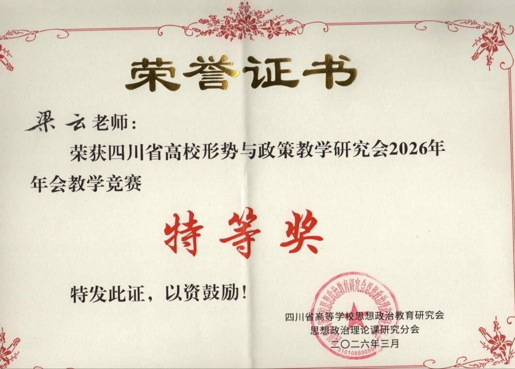 太阳成集团tyc234cc古天乐教师喜获四川省高校形势与政策研究会2026年年会教学竞赛特等奖